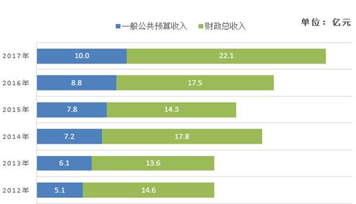 图6 2012-2017年财政总收入及一般公共预算收入