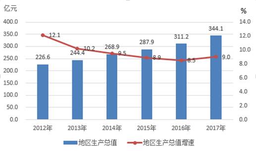 图1 2012-2017年地区生产总值及其增长速度
