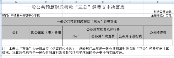 永安镇中心学校2018年度“三公”经费财政拨款支出决算为0万元。